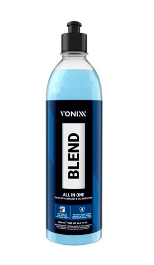 BLEND ALL IN ONE é UM POLIDOR DE ETAPA úNICA COM PROTEçãO, QUE ALIA O BRILHO DA CARNAúBA E A RESISTêNCIA CERâMICA DO SIO2, PROMOVENDO TAMBéM HIDRORREPELêNCIA NA PINTURA. SEU ALTO PODER DE CORTE ELIMINA RISCOS E SWIRLS MéDIOS A SEVEROS (COMPARáVEL A MARCAS DE LIXA P2000 OU MAIS FINAS).