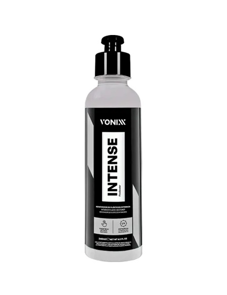 INTENSE é UM RENOVADOR DE PLáSTICOS COM PROTEçãO UV, CUJA FóRMULA BALANCEADA PROMOVE ACABAMENTO NATURAL E TOQUE SECO, COM DURABILIDADE DE 6 MESES. O PRODUTO DEVE SER UTILIZADO ESPECIFICAMENTE NA PARTE INTERNA DO AUTOMóVEL, EM SUPERFíCIES COMO VINIL E PLáSTICOS EM GERAL.