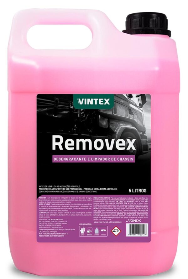 REMOVEX é UM DESENGRAXANTE E LIMPADOR DE CHASSIS DE ALTO PODER DE AçãO, DESENVOLVIDO PARA REMOVER SUJEIRAS PESADAS COMO óLEO, GRAXA, BARRO, LAMA, MATéRIA ORGâNICA DE CHASSIS, CARROCERIAS DE FERRO E MADEIRA.
